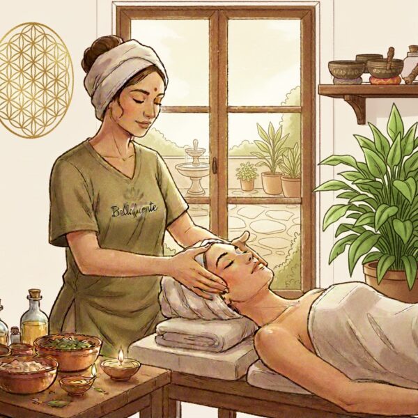 El masaje facial ayurvédico es una técnica holística de la India que usa aceites tibios y movimientos suaves sobre puntos energéticos (marmas) para desestresar, nutrir la piel y mejorar la circulación, logrando un efecto “lifting” natural, luminosidad y equilibrio mental, mediante un ritual que incluye aplicación de aceites personalizados y trabajo en sienes, frente, ojos y cuello.